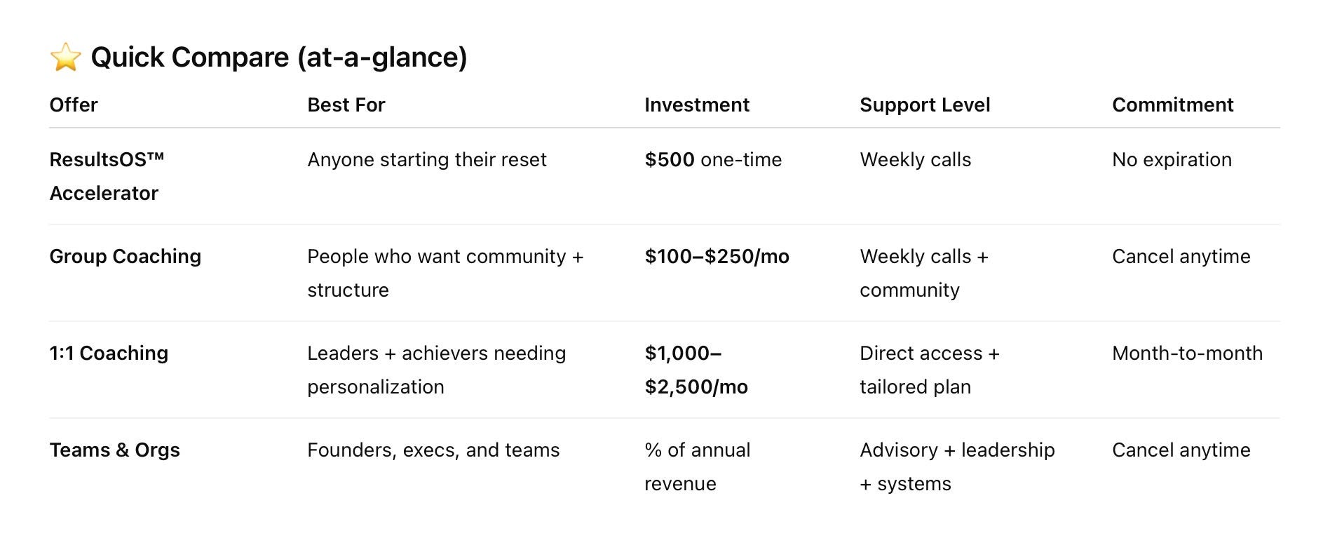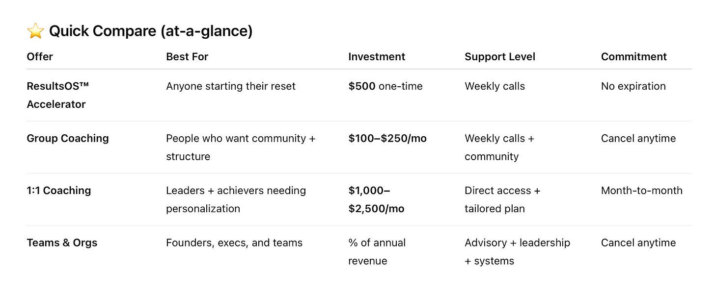 Every path starts with ResultsOS™ — your simple system for better results with less stress.
