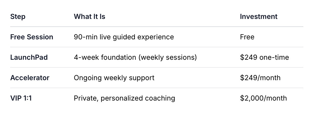 If you want speed, privacy, and direct access — and you’re ready to invest in yourself at a higher level — VIP might be your path. Apply and we’ll talk.